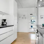 De strand villa beschikt over een ingerichte keuken met een koelkast en een vaatwasser. De villa ligt op 75 km van de luchthaven Billund.